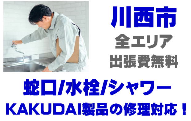川西市で水栓メーカーKAKUDAIの修理業者をお探しなら当社までお気軽にお問い合わせください。蛇口の水漏れ、シャワーの故障などカクダイ製に関するトラブルなら何でもご相談ください。